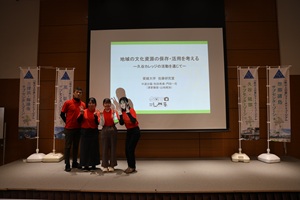 「地域の文化資源の保存・活用を考える」と題した「フィールドミュージアムアカデミー久谷カレッジ」の活動報告を行いました。活動の集大成として制作した「ここ見て!文化資源みどころハンドブック」の目的や内容の紹介を中心に文化資源の保存・活用について、展望などについて報告しました。発表だけでなく、ハンドブックについても好意的な評価をたくさんいただきました。